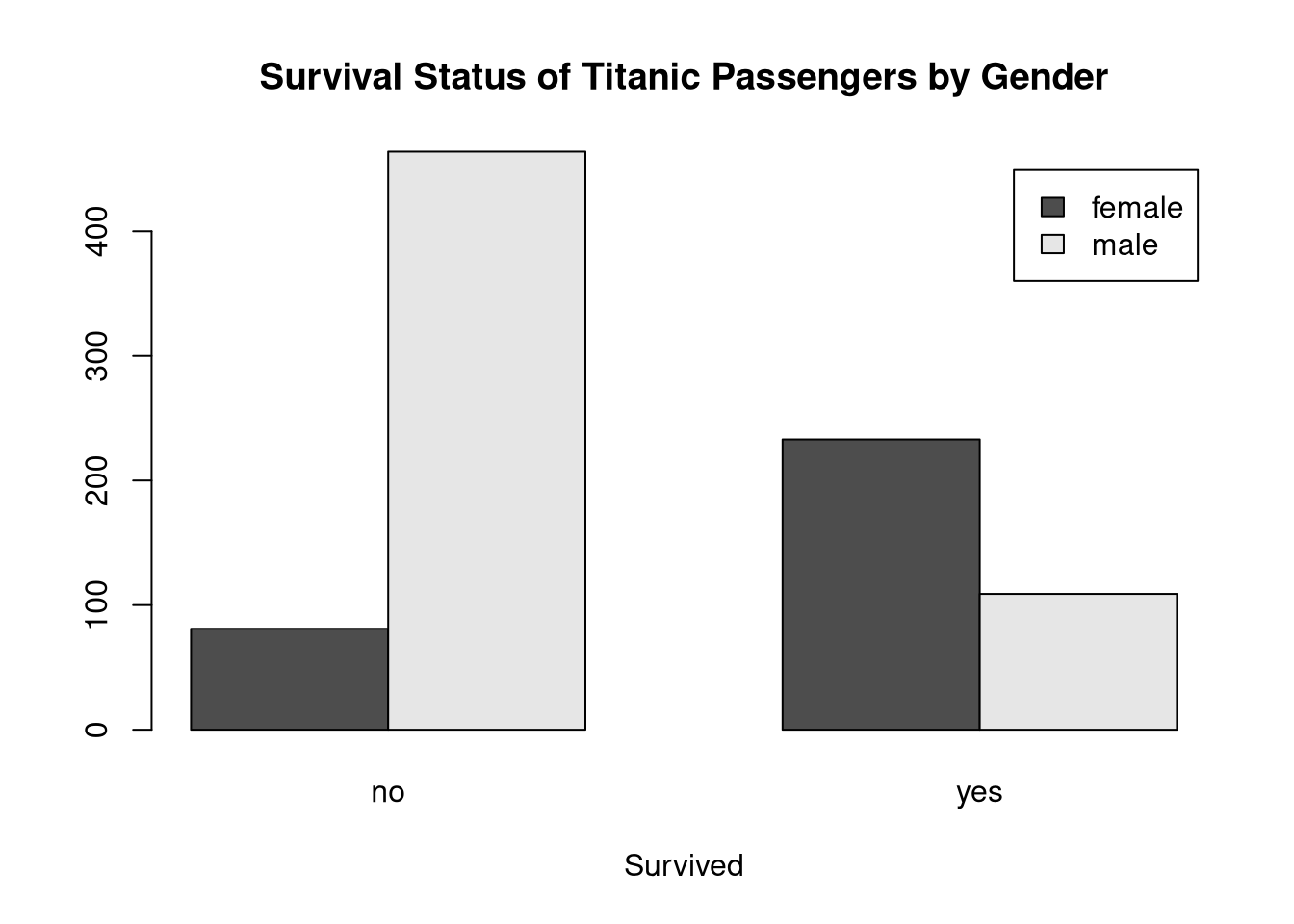 What does this figure tell you about relative rates of survival between male and female passengers on the Titanic?