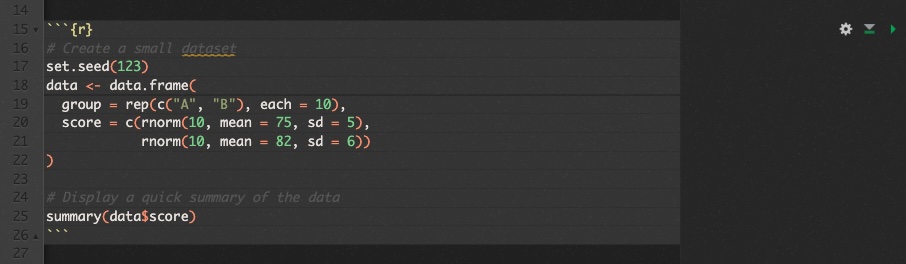 If the document executes without errors, the rendered output (HTML, PDF, or Word) will be updated. If an error occurs, Quarto will stop rendering and display a message pointing to the problematic chunk. Reading these messages carefully helps identify where code might rely on outdated objects or missing packages. Running code chunks individually in RStudio (by clicking the green play icon at the top right of each chunk or pressing Ctrl + Shift + Enter) is another useful way to test smaller sections before rendering the entire document. By checking execution regularly, you can catch issues early and ensure your document remains fully reproducible from start to finish.